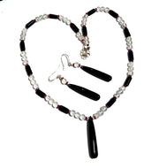Natural Black Onyx/Crystal Beads Necklace Set Jewelry, 925 Sterling Silver Necklace, Beaded Necklace Statement for Gift Jewelry