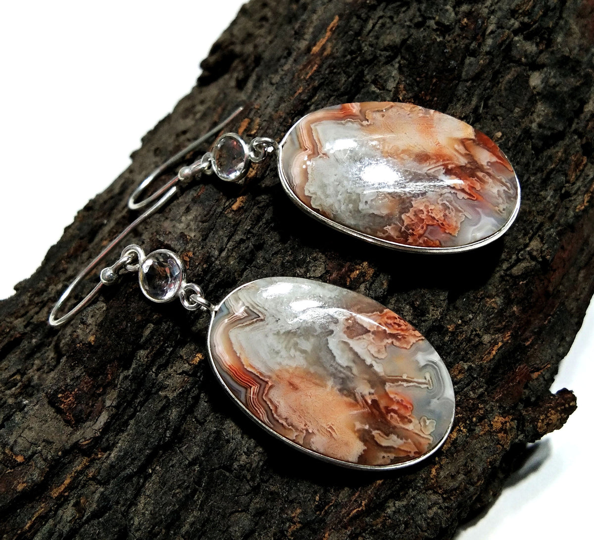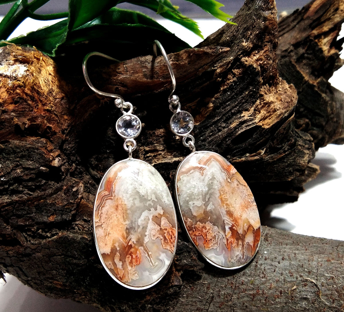 A+++ Natural Crazy lace Agate/White Topaz Gemstone Earring 925 Solid Starling Silver Earring Oval Shape Stone Size 25x17 mm lace...
