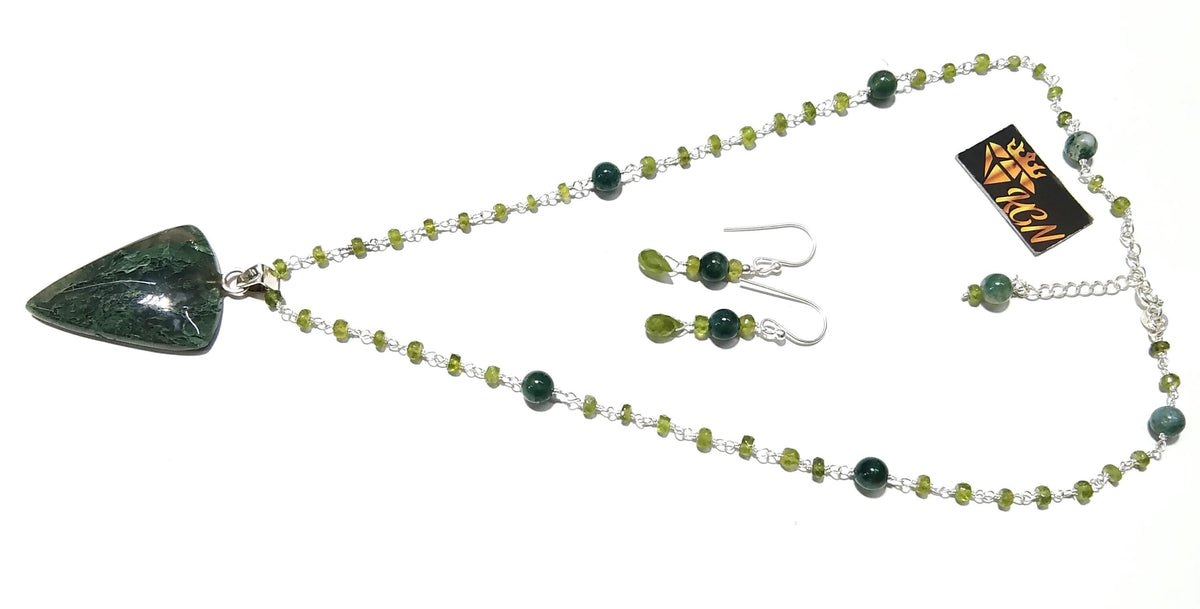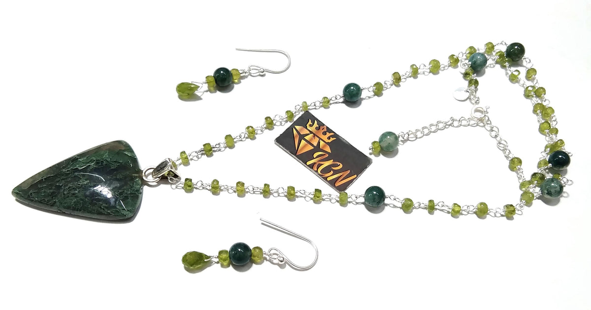Natural Indonesian Green Moss Agate Stone Necklace Earring Jewelry Set, 925 Sterling Silver Necklace Jewelry, Necklace Set For Women Matching...