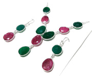 Natural Green Onyx/Red Ruby Necklace Earring Jewelry Set, 925 Solid Sterling Silver Necklace Earring Jewelry Gift For Women Birthstone A+++...